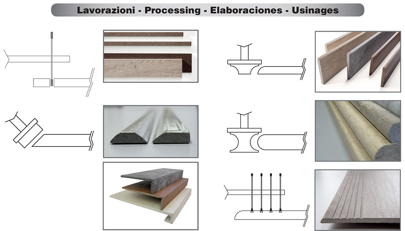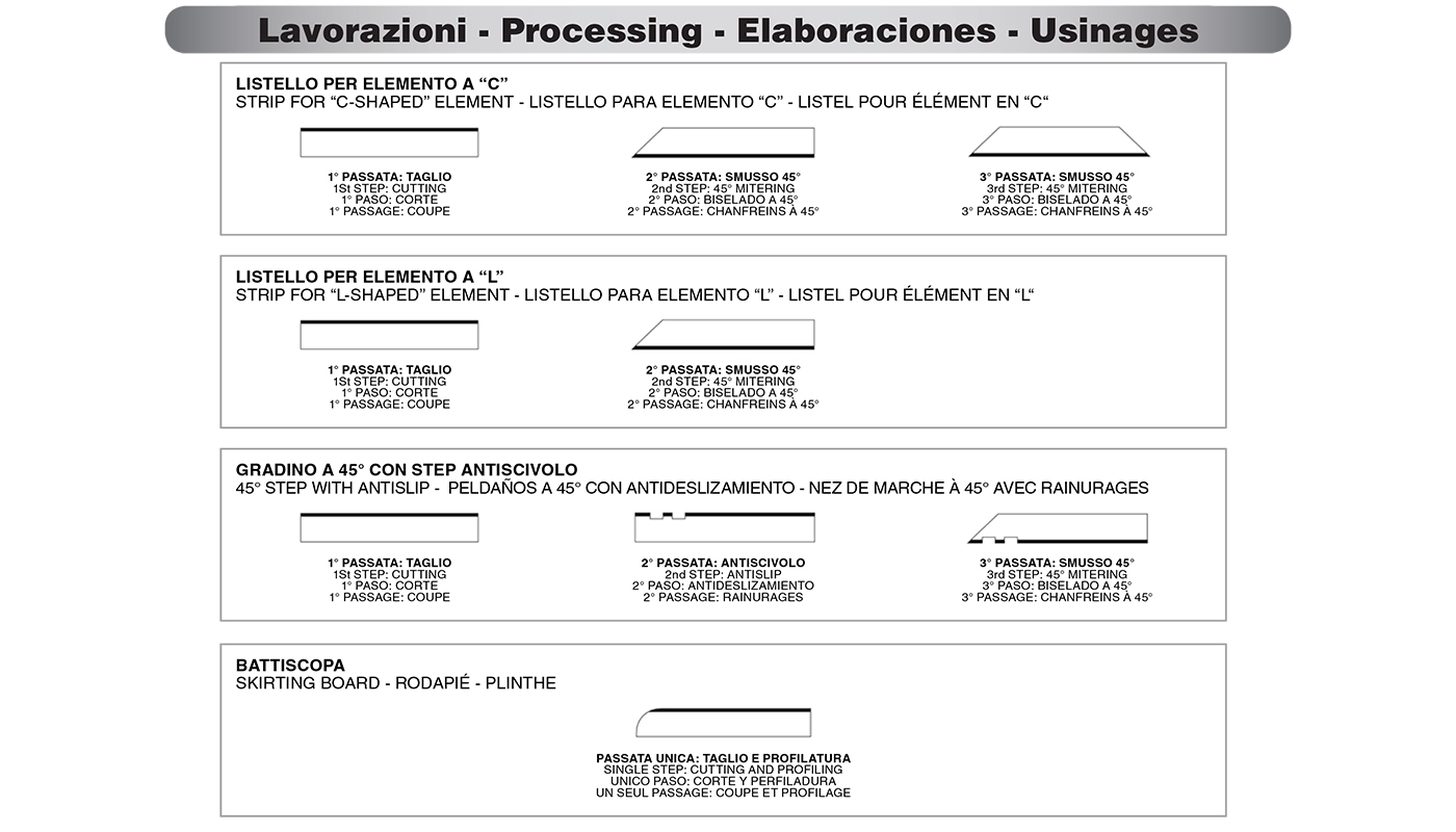 The new MVB/4 is an automatic machine able to carry out both the cutting and the profiling of skirting pieces, doorsteps and window sills, with bullnose and half bullnose edges, in a single passage and with just one movement of the piece. Alternatively, it can make45° mitering for production of kitchen and bathroom top and steps.