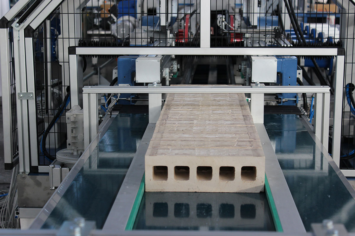 Con la utilizacion de dos maquinas MRM, se pueden trabajar cuatro lados obteniendo un buen toque y una optima ortogonalidad para ladrillos de pavimento y revestimiento.
